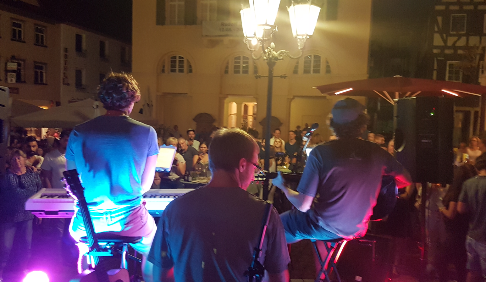 Auf dem Eberbacher Apfeltag spielten wir auf der Bühne vorm Hotel Karpfen. Quasi eine Fortsetzung des Gigs im August. Mit dem Unterschied, dass wir beim Aufbau nicht mehr als 4°C hatten...